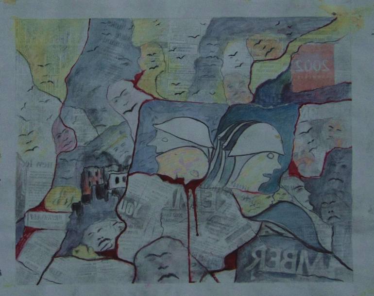 this picture was created as an inspiration regarding the war that I also experienced. Symbols of black birds that create faces in the sky. Soldiers are often miserable and in danger for their lives