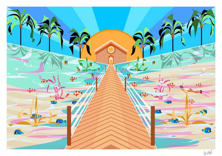 Lizzie Anthony is a British Digital Illustrator. She uses her vast experience of world travel and love of bright colours, bold patterns (and a newfound admiration for anything 1960’s) to transform experiences into large format digital print work, basing her technique around geometric shapes to create scenes of where we’d all rather be on a rainy day. With all of Lizzie's work, she wants to create not only a constant place of happiness for her audience, yet an instant impact when you walk into a room. Lizzie work takes many days of fine tuning, instilled along the detail she willingly incorporates into every piece of artwork.