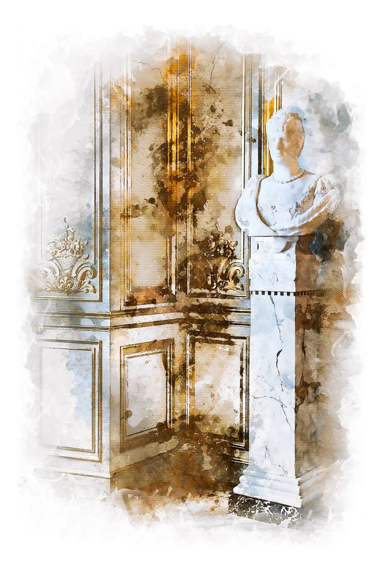 "Originally shot at Christiansborg Palace in Copenhagen, the picture has been digitally manipulated to create a watercolour/sketch illustration. This image was created as one of the background scenes for La Boule de Fleur Mascarade series." A Giclée artwork printed on premium quality Museum Herit...