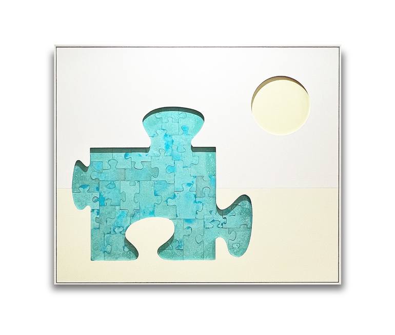 Call of the West is a deeply evocative exploration of memory, connection, and place, rendered in a harmonious balance of soft pastel colors and bold verdigris green on copper. The verdigris, with its exquisite interplay of blue and green, cascades across the surface, forming oversized puzzle pieces-...