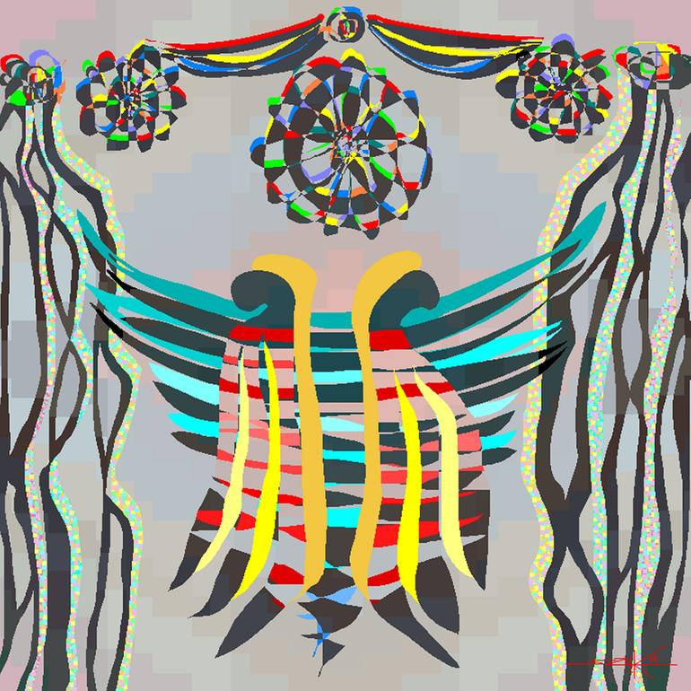 The original artwork consists of a digital file in .bmp format. It is created using the Microsoft Paint application. My paintings start out as a small white square and progress through the usual artistic processes of line, form and colour as well as substantial digital manipulation and enlargement. ...