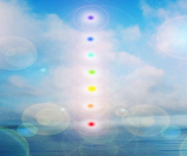 Lights that depict an life spirit soul with the colors of the chakras