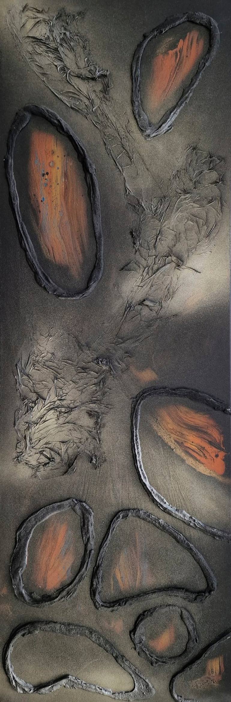Discover this captivating textured abstract painting, where deep earthy browns and warm rust tones meet rich charcoal black. This artwork features raised textures and organic shapes, blending rugged natural forms with smooth flowing patterns. The dramatic color palette creates a bold yet sophisticat...