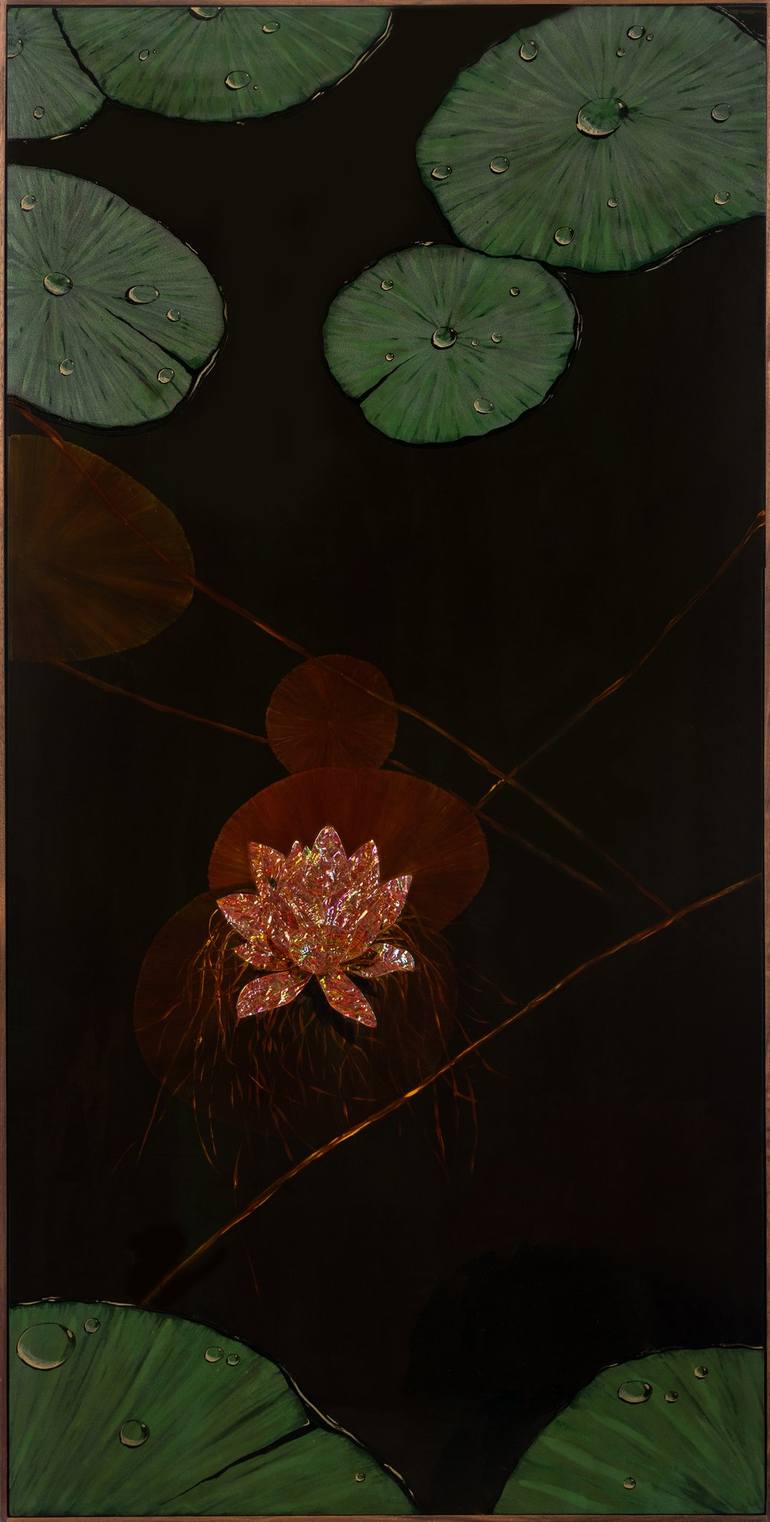Like a lotus blooming clear and clean in the mud, a work that compares a person who triumphantly over hardships to a lotus flower. By utilizing the characteristics of lacquer, the lotus flower in the water was painted several times to be gradually visible.