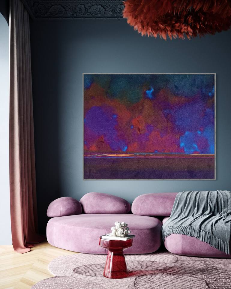 Cosmic Sunsets is an immersive artwork that merges print and painting on a luxurious velvet substrate, inviting viewers into the mesmerizing beauty of desert nights. Inspired by tranquil evenings spent under vast, starlit skies, this piece captures the fleeting yet profound spectacle of a sunset dis...