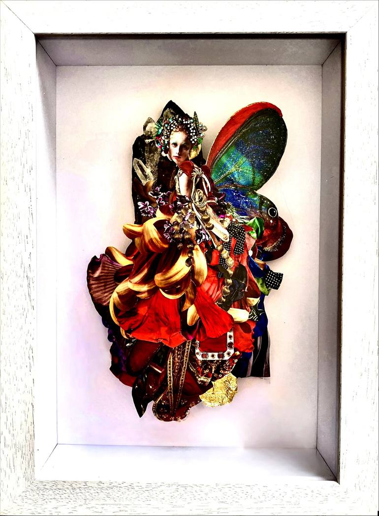 Danic Lago is a Brazilian artist based in London, working with mixed media collage. Her practice is rooted in over 25 years of creative experience developed across Switzerland, Mexico, and the UK, shaped by an early career in fashion trend research and close collaborations with European and Brazilian designers. Her work explores strength and emotion shaped by the intuition of the divine feminine. Using textiles, colour, and found objects, Danic creates layered compositions that function as visual poetry, handmade narratives that invite reflection, curiosity, and personal interpretation. Each piece unfolds slowly, revealing meaning through subtle symbolism. Central to her practice is sacred transformation. By reusing and reimagining everyday materials,I breathe new life into what might otherwise be overlooked or discarded. This process-driven approach allows me to create works that feel both intimate and expansive, grounded in the physical world yet resonant with spiritism and otherworldy beauty. My mixed media works are not intended to be passively viewed, but experienced. They exist as spaces of dialogue between artist, material, and viewer. Through layering, I construct pieces that balance the deeply personal with the universally felt, encouraging viewers to bring their own stories and sensations into the work. Ultimately, my practice is an exploration of connection: between materials and meaning, real and spiritual, inner life and shared experience. My work seeks to awaken moments of quiet transformation through the language of touch, texture, and storytelling.