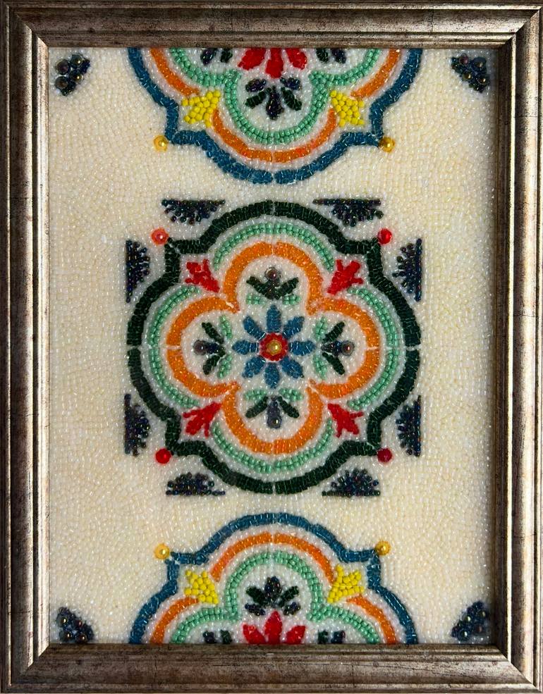 "Cultural Tapestry" by Plamena Papazova is a masterful mosaic that transcends mere decoration, becoming a profound statement of artistic heritage and cultural sophistication. Each bead is meticulously placed by hand, creating a work of art that honors the timeless beauty of Southwestern Native Ameri...