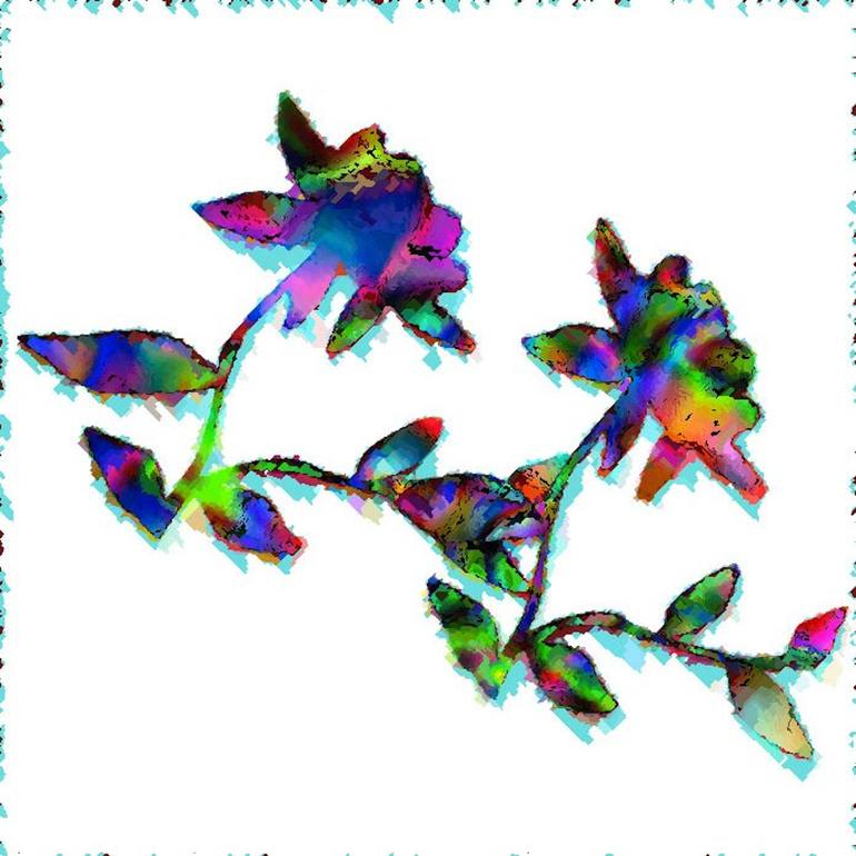 Limited edition Giclée print on Ilford textured paper (cotton). Edition 1 of 10, signed and numbered by the artist. Size: 67.5 x 67.5cm. This colourful, abstract digital painting combines various blending techniques to create an uplifting and eye catching design. The stencilled flowers are intert...