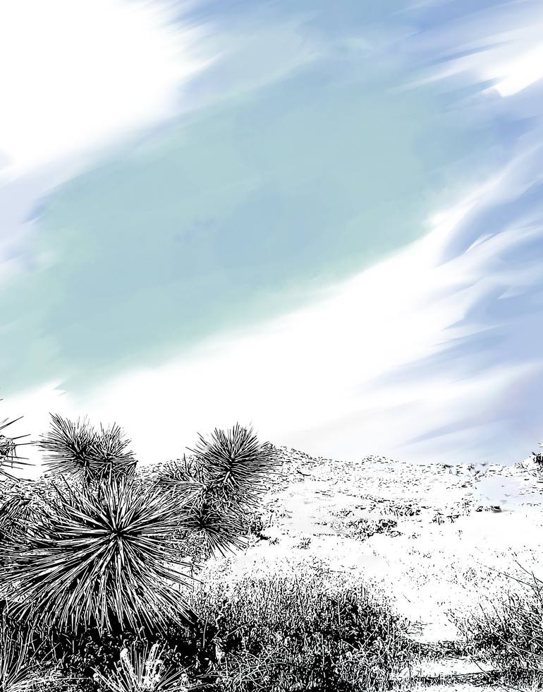 "Desert Blues" explores the tranquil yet captivating essence of the desert landscape, captured through a vibrant interplay of multi-hue blues in the sky and intricately illustrated desert flora. This artwork seeks to evoke a sense of serenity. This artwork was created from a mixed media of acrylic...