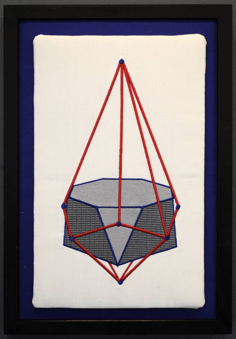 digital; embroidery on outdoor fabric, stuffed and mounted on a canvas painted with Flashe matt paint. Framed