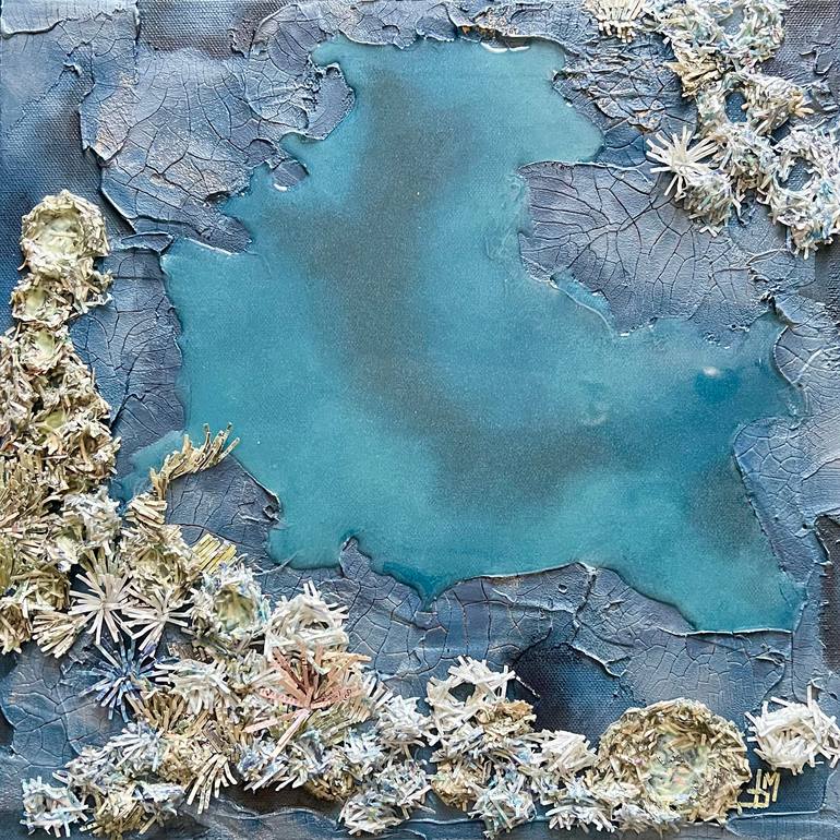 "Ebb and Ruin" is a mixed-media artwork that vividly captures the devastating impact of money and greed on our ecosystem. The piece features dead coral reefs intricately formed from tiny pieces of shredded money, symbolizing the corrosive influence of financial greed on nature. In the center, the da...