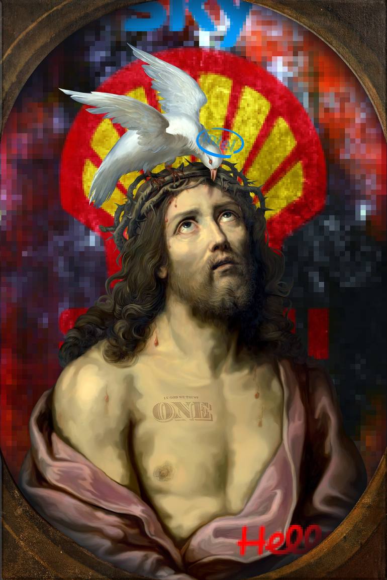 My version of ecce homo, seasoned with some contemporary elements and a white dove that acts as an advisor and second person of the mysterious triad that governs the universe and consequently the human race. Despite being a limited series of 10 pieces, each of the works printed on canvas is artisti...