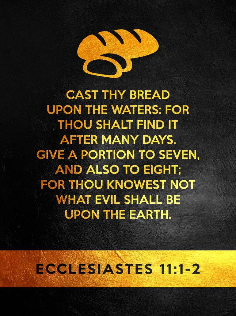 Cast thy bread upon the waters: for thou shalt find it after many days. Give a portion to seven, and also to eight; for thou knowest not what evil shall be upon the earth.