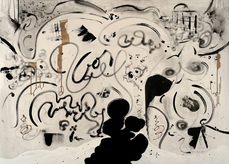 The spontaneity of Pollock's action paintings alongside Miro's surrealist language and Franz Kline's stark contrasts of bold black strokes against a white background have greatly influenced this artwork. I thoroughly enjoyed painting this, lots of loose and playful lines and smudges moving across t...