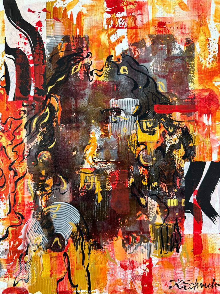 Ember "Ember" is an 11 x 14 inch mixed media, two-dimensional artwork that forms a compelling part of a four-piece portrait series dedicated to Native women, highlighting the profound elements of creation and connection to the earth. The central subject of this piece is an indigenous woman, whose p...