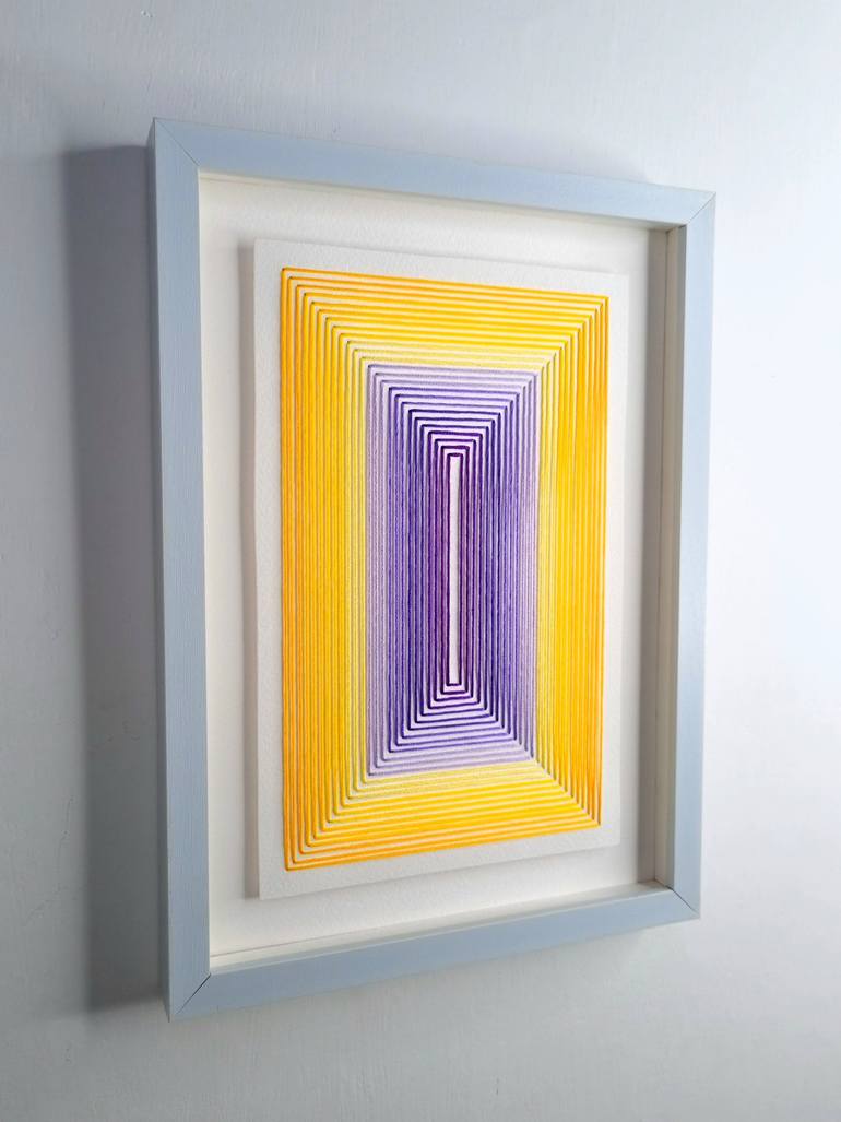 Title : Euphoria Fusion Size : 23.2 x 31.8 (With frame) : 16 x 25 (Artwork) "Simplicity is Purity" This original handmade one-of-a-kind artwork combines minimal hand-stitching on paper surface with meaningful color effects. This artwork is part of the Haze of Colors(2024) collection. Thi...