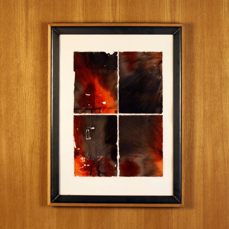 Edited digital image, transferred onto watercolor paper. Vibrant colors. Framed with metal angles and oak wood.