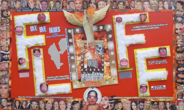THE PERFECTION OF IMPERFECTIONS Alan Pringle (b. 1966) Pringles creative practice flourished from his initial training as a welder and metal fabricator in Glasgow. Along with being a self taught artist,he has combined a variety of activities (from undertaker to ambulance driver) to arrive at a perspective that places him within `The Outsider`tradition. Beginning in !997,he has exhibited,mainly sculpture,in galleries throughout the west of Scotland and undertaken numerous public and private commissions. The raw and chaotic energy of urban existence is at the epicentre of his latest collages produced since 2019. Personal and societal fragilities are viewed through the grimy kaleidoscope of tabloid culpture,media celebrity,corporate greed,and political corruption. Like many,Pringle has concerns for the future of our irrational world but trusts that culture can offer larger perspectives and play a part in achieving more equitable and healing possibilities. Peter McCormack CURATOR Lillie Art Gallery (retired)