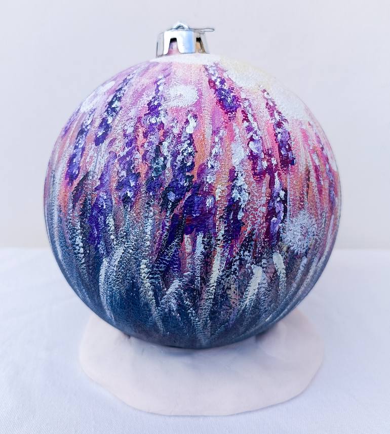 This hand-painted spherical art object explores the quiet descent of light as both a visual and emotional presence. Layers of deep blue and muted crimson drift downward across the surface, suggesting gravity, time, and the slow settling of atmosphere. There is no fixed horizon and no defined place. ...