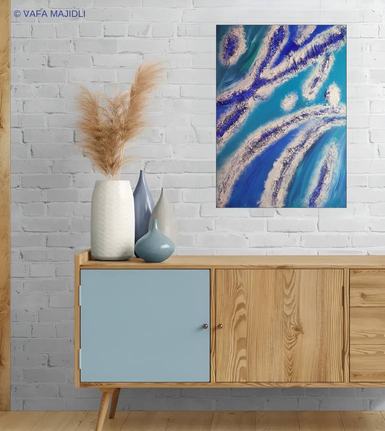 Experience the transformative power of life through this original textured marine artwork, a captivating blend of vibrant blues and whites that embodies the fluidity of water. With bold brushstrokes resembling abstract wave patterns, the piece evokes the energy of a turbulent sea, symbolizing how ou...