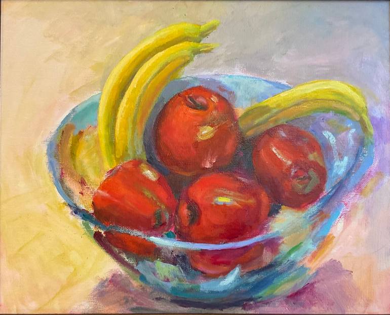 Beautiful produce! Nothing prettier than nature. Love the color that oil produces. Hope viewers can feel the slick apple skin as well as appreciate the colors bouncing in the glass bowl.