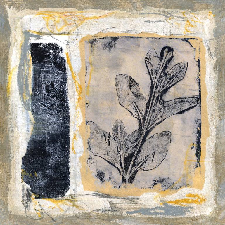 "Garden Fog" was inspired by my years spent in morning coastal fog. This piece is dark and moody and would work well in many types of spaces. I've collaged a monoprint made from a collected stem. It is accented with oil pastels, acrylic, and graphic. It is on beautiful hand made paper, comes unframe...