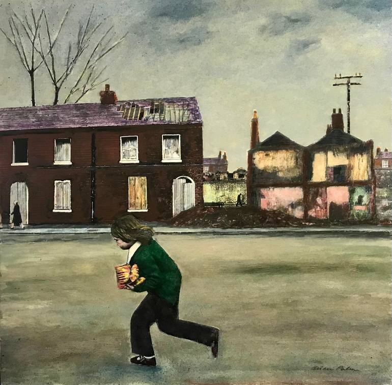 A girl runs across an open space in the city carrying three packets of crisps. The houses in the distance are reminiscent of a battle scarred landscape; in this instance, the battle was one of urban development. The girl instinctively hurries past the derelict houses. A woman briskly strides along t...