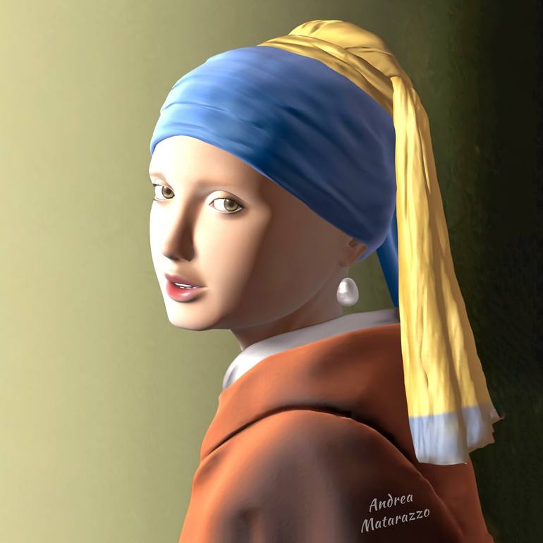 Portrait dedicated to a famous painting of by Vermeer . An ancient subject, reinterpreted with an modern expressive soul. The technique is 3d computer graphics.