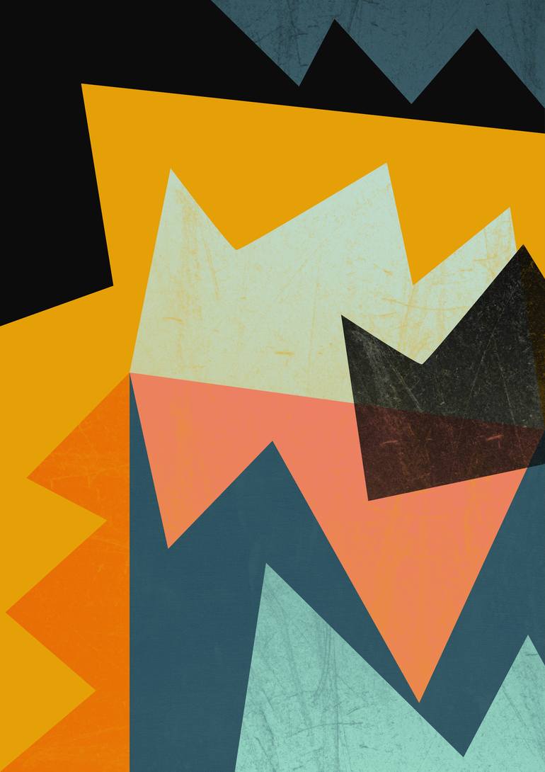 Abstract Digital Illustration. The composition combines vibrant solid colors, geometric shapes and different textures. Contemporary Artwork
