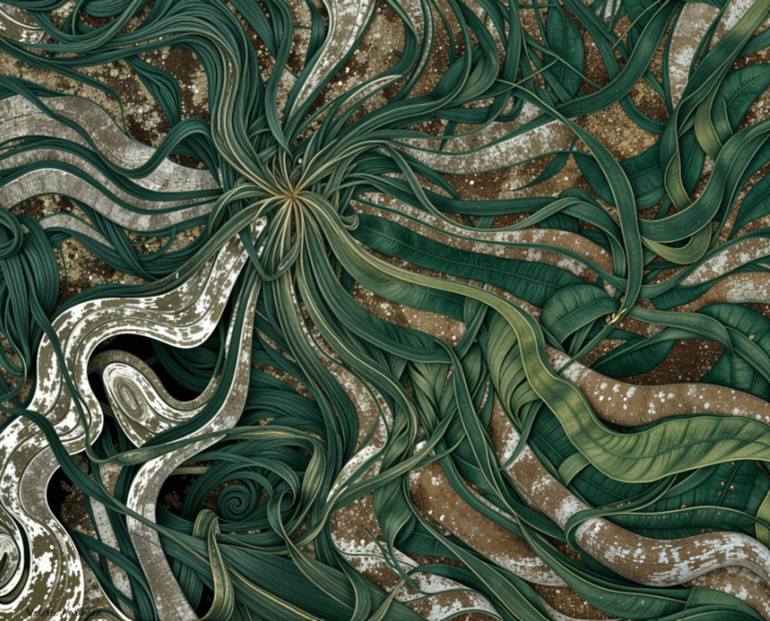 What inspires me is the rich green of this image and the vastness of the growing plant. I hope the viewers will see the depth of this plant growing and with the feel of actually growing outside of the image. I create my art digitally, but for a better, leaner effect and with more precision, I enhanc...
