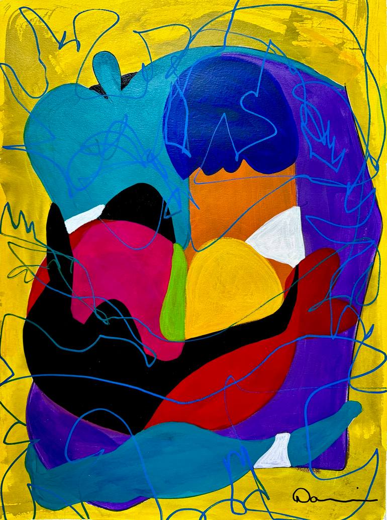 Harmonic Flux is a vibrant abstract painting that stands out through its dynamic interplay of bold, overlapping shapes and a vivid color palette. Measuring 18x24 inches, this piece is crafted with mixed media on fine art paper, adding a unique texture and depth to its composition. The artwork is dom...