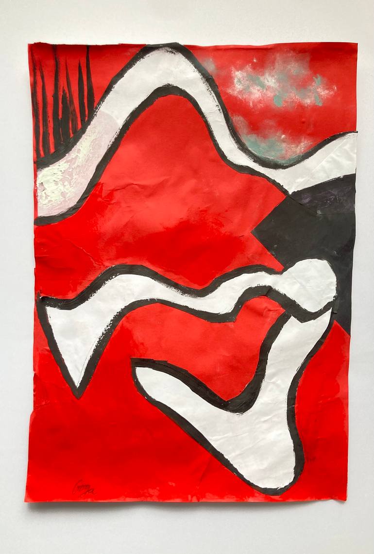 GOGA is an artist who has developed her craft in different fields: progressing from digital art, design and photography to painting and collage. A digital artist and designer turns analog, as the world becomes digital with NFT’s and AI. GOGA rebels, replacing her computer for brushes, paints, paper and scissors. Her creative process starts with simple drawings of three dimensional space defined by curved near parallel black lines and the empty white space in between them. By cutting it into parts she gets the main elements, recognisable in all the pieces in this series. Similar to surrealism and abstract expressionism, her art practice emphases spontaneous, automatic, or subconscious creation. Her work is linked by the notion of intuition and the unconscious and her abstract practice is varied and invites the viewer to find his own interpretation of her work. Her work appears in a number of private collections across the UK and Europe.