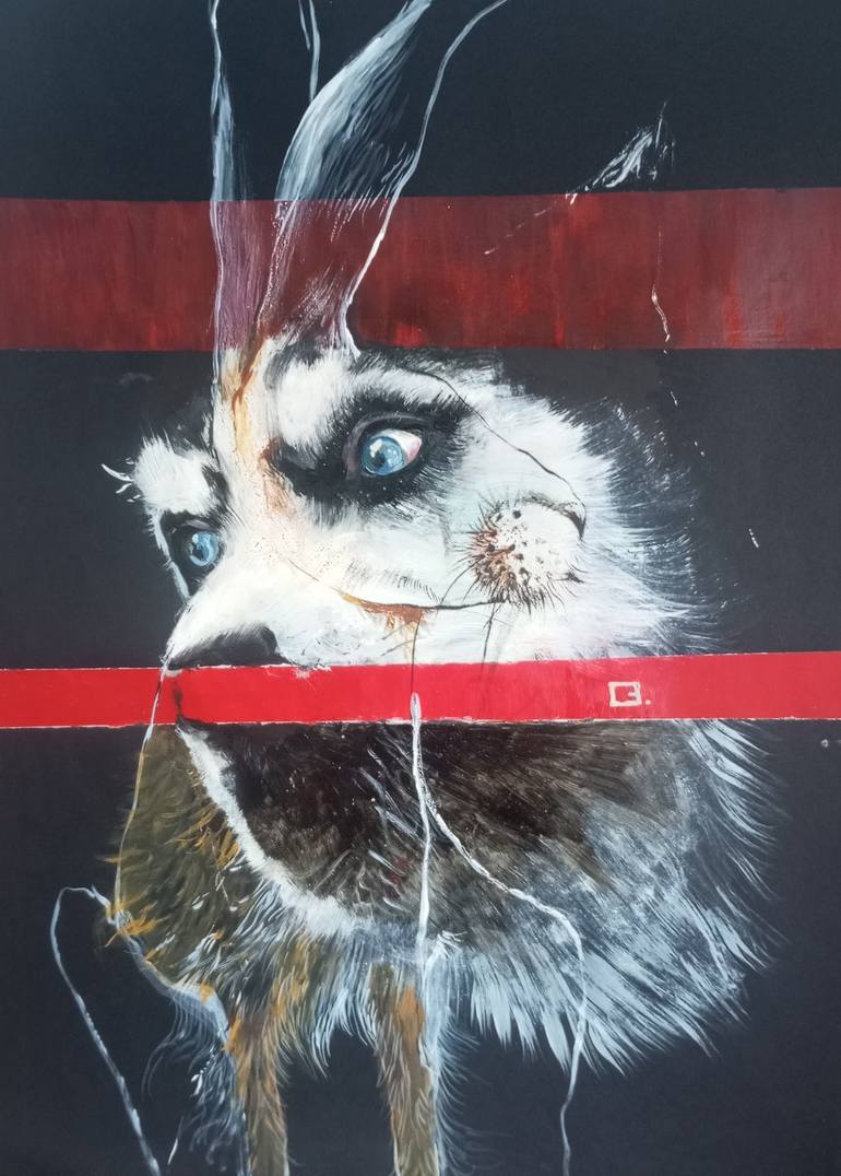 A hare moved in the dogs space, this piece started as a dog and than a hare appeared and I thought dogs are the ones that don't know what personal space is . I discovered this hare is definitely not shy. Original art on ordinary black paper( not heavy paper)I used oil and acrylic on paper. Will c...
