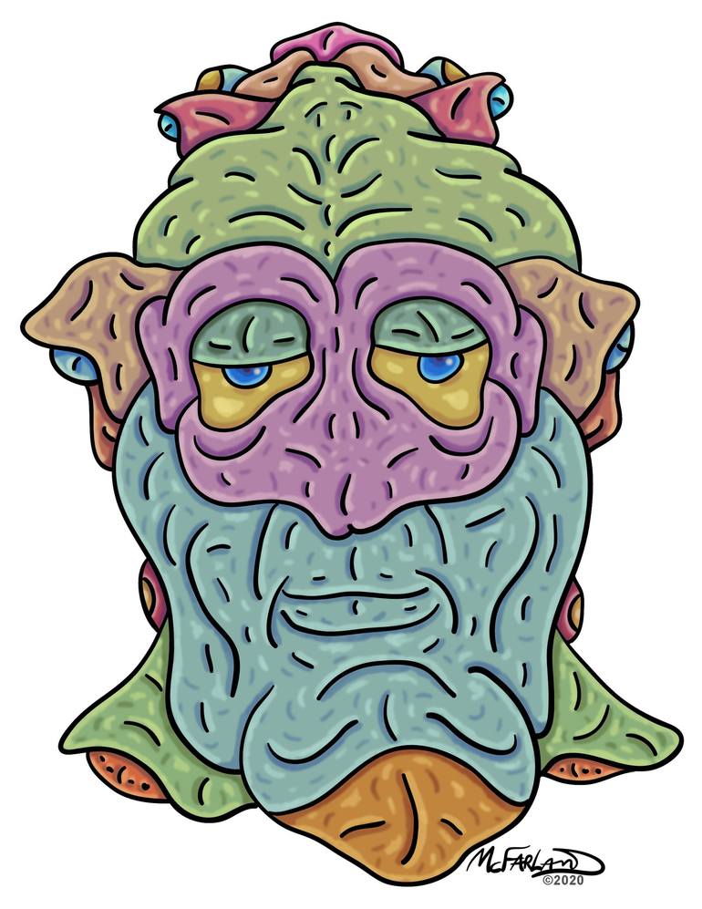 American, b. 1958 Life-long resident of the state of Minnesota which is in the middle of the U.S. next to the Canadian border eh. Mr. McFarland is an artist, animator and video editor based in the Twin Cities. He has been creating unique and original characters in a variety of mediums seemingly forever.