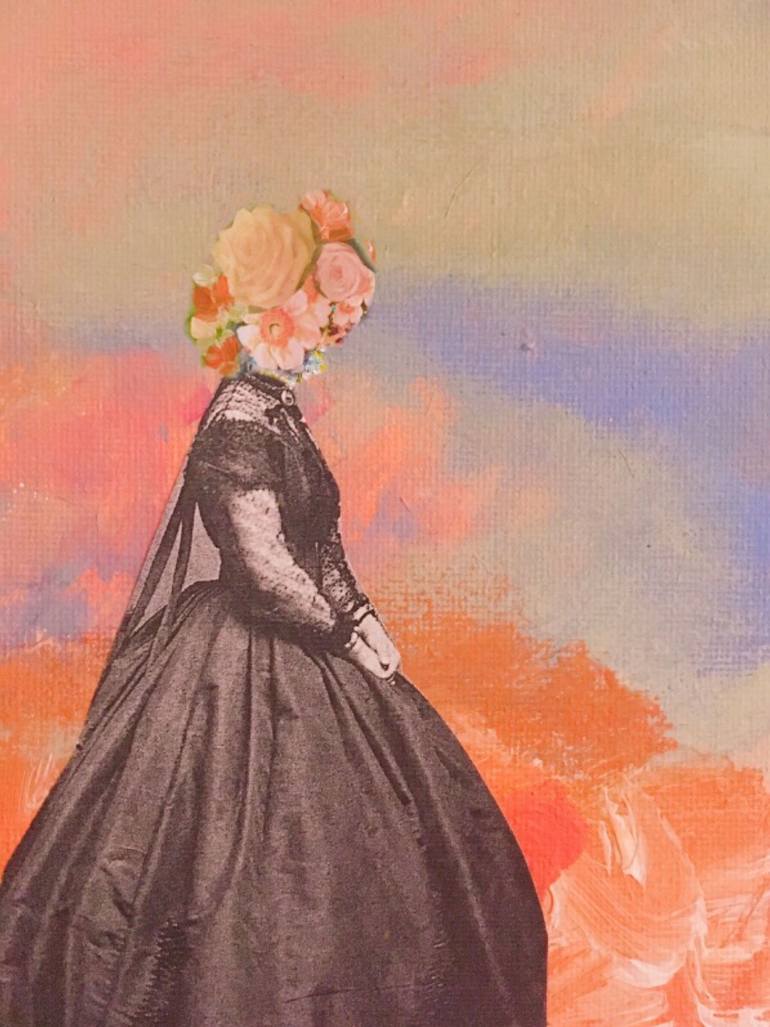 This began as a collage with mixed media and I then digitally enhanced it. I am fond of classical quiet paintings of women in interiors such as Whistler, Van Eyke and Sargent. I like the stillness and eerie tensions in these paintings. I have also been inspired by contemporary art and the way many a...