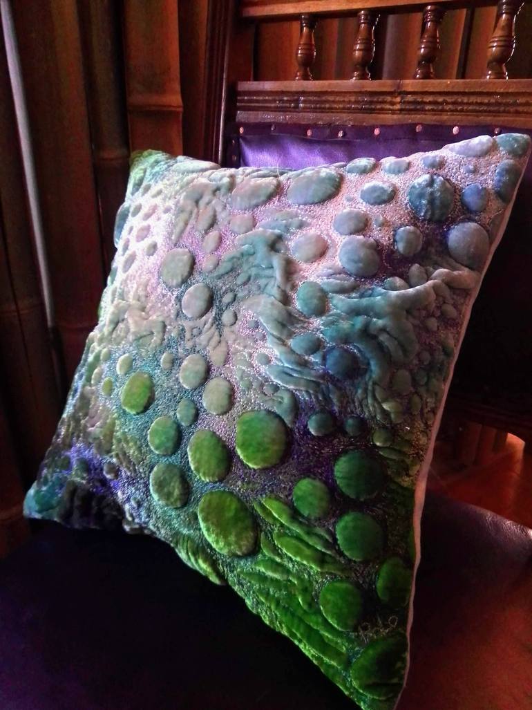 Could be champagne bubbles, moss or ice. Inspired by satellite photos and images from microscopes, the results are incredible textured velvet in vibrant colours to brighten any interior. They are tactile to be stroked, admired and interracted with, surface washable and robust, they are not just to l...