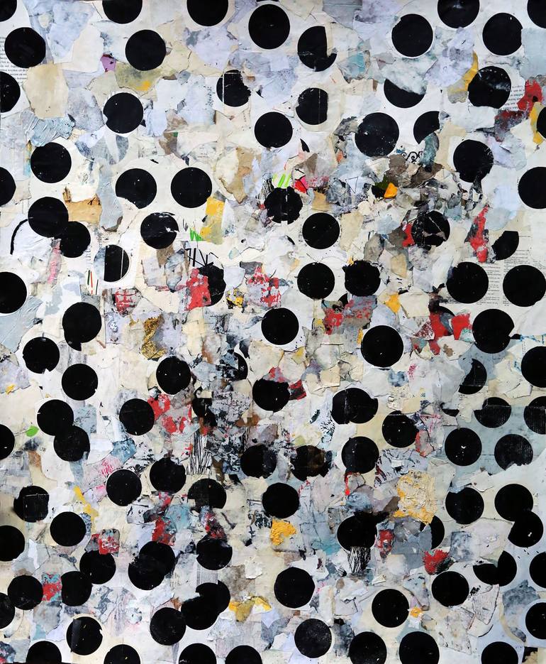 born 1976. Despite the varied painting and thematic subjects that Jeroen Blok tackles, ranging from abstract material research to series in which figuration and abstraction create an exciting balance, his signature style is very recognisable for those who delve into his oeuvre. A serial approach is typical of his working method as well as his evident pleasure in experimenting with techniques and materials, resulting in an unconventional use of collage technique, intriguing layers and a narrative visual language. The working method and the chosen themes show the need for complete autonomy and a degree of maladjustment, contradiction and obstinacy. And if I were to say that he is enthusiastic or driven, it would be an understatement: possessed comes closer. In other words, an enormous inner drive, or, as can be said so beautifully in German: making art "aus innere Notwendigkeit", because you cannot do anything else. This is reflected in an enormous flow and production. His work is characterised by a critical attitude, a commentary on what is going on in the world and the social cohesion amongst people. This is accompanied by a great desire for freedom, an opposition to any form of patronage or restraintment. In Blok's recent work, for example, people regularly appear as small and insignificant creatures, who seem to surrender or try to break free from the pattern. The results are bold, sometimes subdued or even poetic. He himself says of his work: "My paintings and drawings are best read as work in which perception, free interpretation and image converge with one another.”