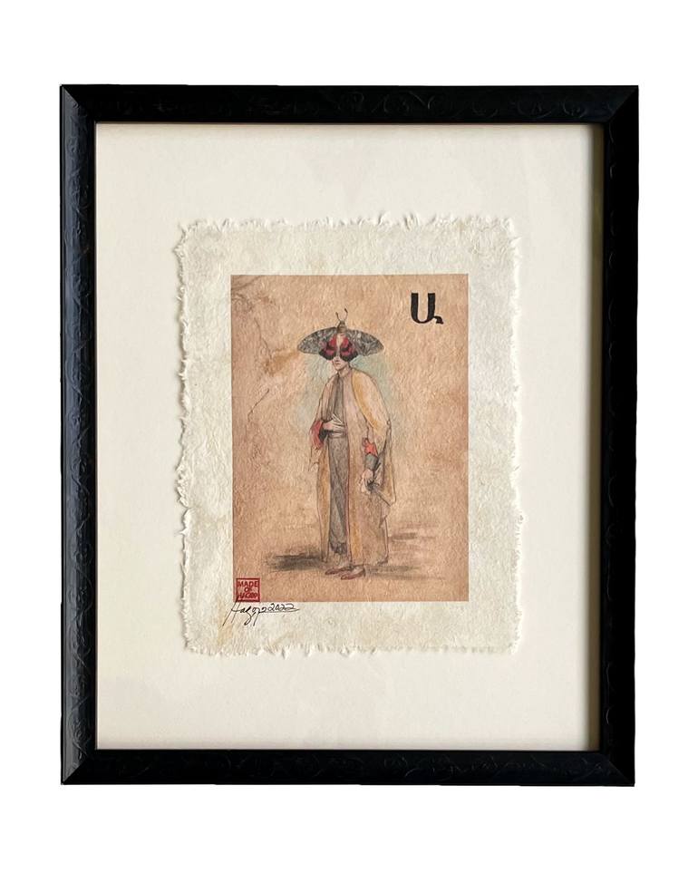On handmade Amate bark paper from Mexico. Professionally framed in black wood frame and ready to hang.