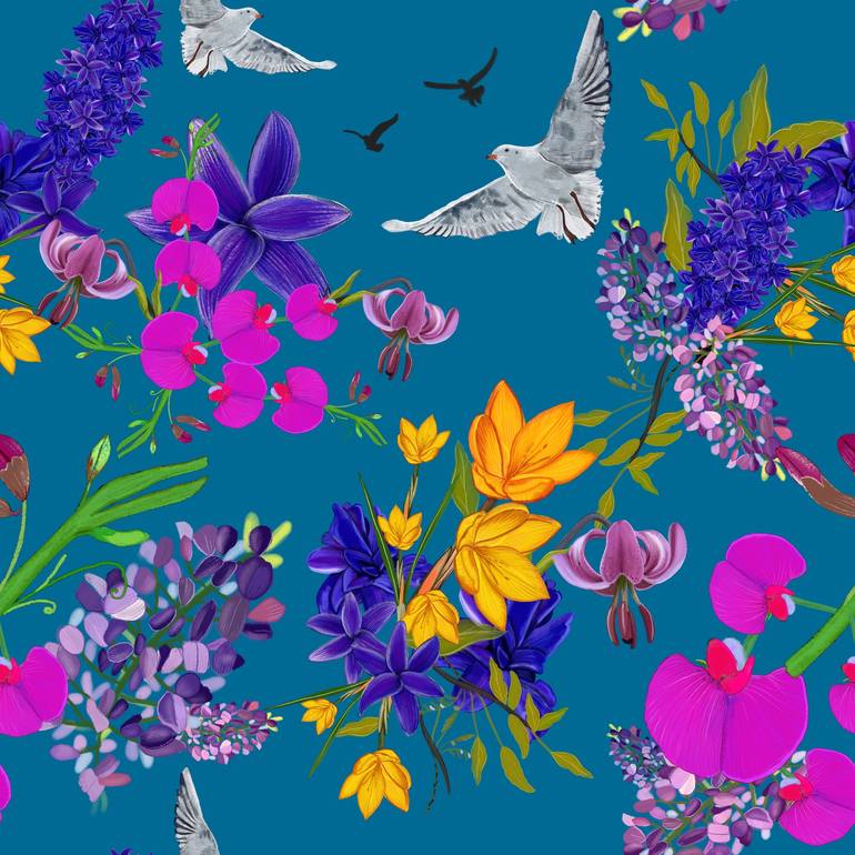 Istanbul flowers artwork made with graphic tablet from original artwork and digitized and modified. In this work, I was inspired by the rare flowers of Istanbul and the Bosphorus. While feeling the colorful and cosmopolitan structures of Istanbul, I wanted them to cheer up by choosing vibrant colors...