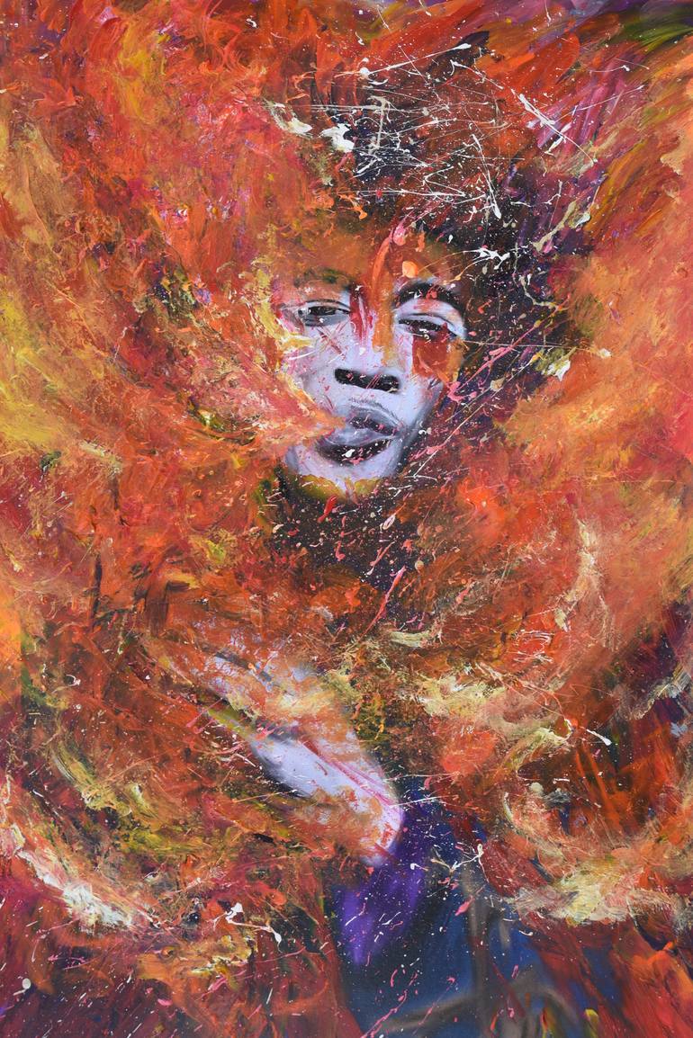 My inspiration is lifelong love of Jimi Hendrix his spirit and his Music The view will hopefully feel the intensity of his work and contagiousness of his work and its unpredictability The medium is complex . starting with a digital drawing to paper then multiple types of pain and techniques then a...