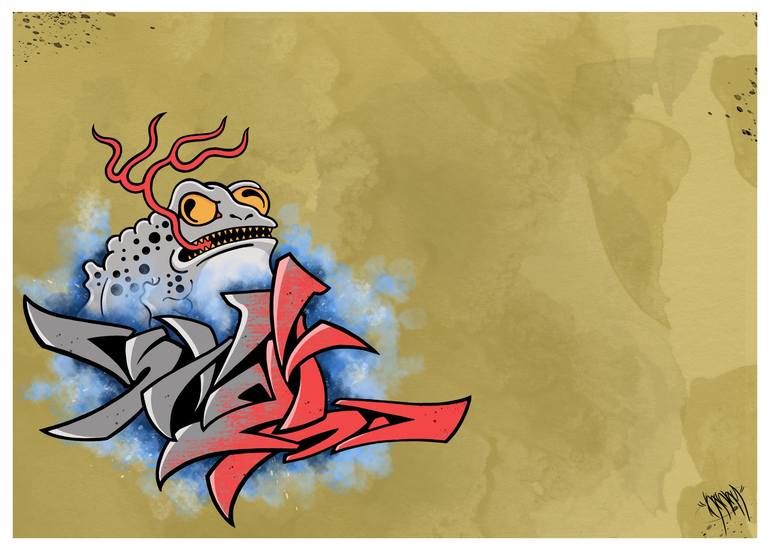 I was inspired for this work by Japanese prints and their use of space, the title "kaeru" indicates the frog in Japanese culture and the pronunciation is equal to the word "return". time passes but every time I return to drawing my graffiti because there is nothing else that makes me enter the flow ...