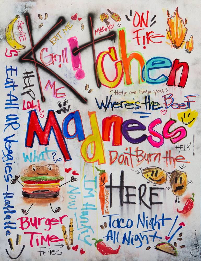 This piece was created as part of a graffiti-inspired collection. It is a fun and humorous addition that can be added to your kitchen area, restaurant, cafe, or art collection.