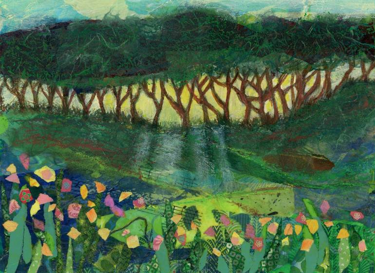 Light filters gently through the trees in this collaged landscape on paper — capturing the essence of komorebi, the Japanese word for 'sunlight streaming through leaves'. Layered textures and delicate contrasts evoke a serene scene, where nature and light meet in quiet harmony. This artwork started ...