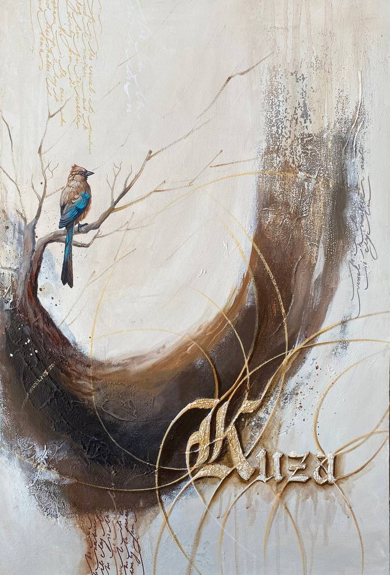 ‘The painting “Kuza” blends the essence of Persian culture with the profound teachings of Rumi, capturing the artistry of the pot maker and the spiritual journey of the Sufi mystic. The title itself, originating from Persian and meaning “vessel,” symbolizes the duality of the vessel and the maker, m...