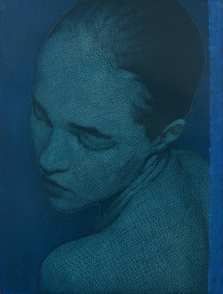 A sample of female figures, which echo the aesthetic canons of a bygone age, make up the geography of representing my works. A narration brought to the minimum terms, in which portraits, bodies and their gestures are harnessed in an aseptic and geometric place, real solid architectures in which they are defenseless, a space within the pictorial medium or through the virgin portions of slate. It, metamorphic stone, becomes the embankment of painting, a window through which the user is given the opportunity to observe, in disarming silence, the slightest gestures of melancholy and defenseless figures.