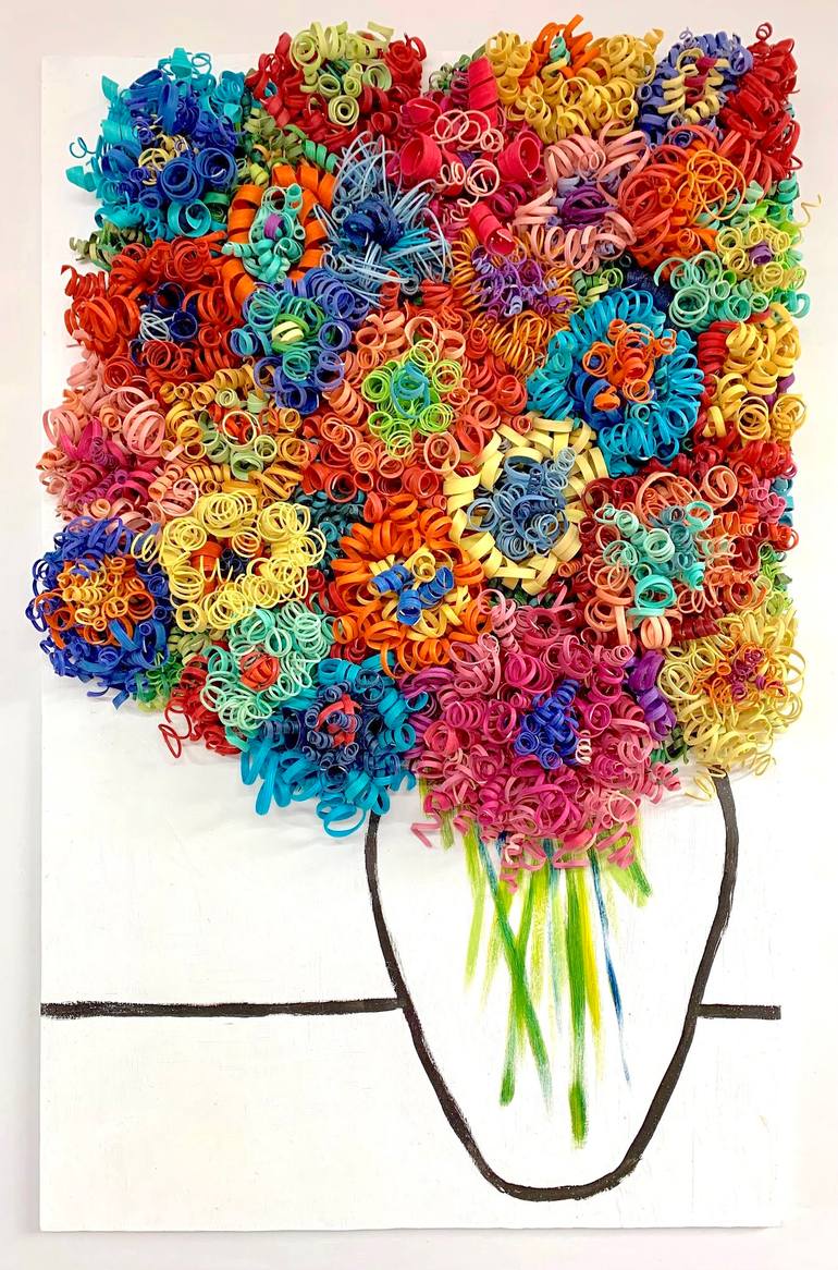 Karmin Schafer has been a professional artist since 1995. She lives in New York, USA. She has her BFA in painting from Syracuse University. Recently her direction has changed from painting into creating beautiful, energetic, wood sculptures bursting with color. They are called the “LOST and FOUND” series. They were inspired by watching wood shaving fall to the floor while a wood carver was working on his lathe. Karmin “found” those wood shavings that were “lost” on the floor and made them into something beautiful. From being “lost” to being “found”. She hand curls each piece of wood one by one that you see in her sculptures and hand builds her sculptures one spiral at a time. Karmin is always experimenting with new styles and new materials. Karmin’s desire is to continue creating her “LOST and FOUND” sculptures on a bigger scale and one day she hopes to create a huge outdoor “LOST and FOUND” sculpture made of metal.