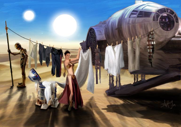A thought-provoking twist on the day-to-day living on Tatooine. Making good use of the resources around you is essential. This piece benefits from a hidden augmented reality digital layer which brings the piece to life using your smartphone. Just download the free ARTIVIVE app and point your phone...