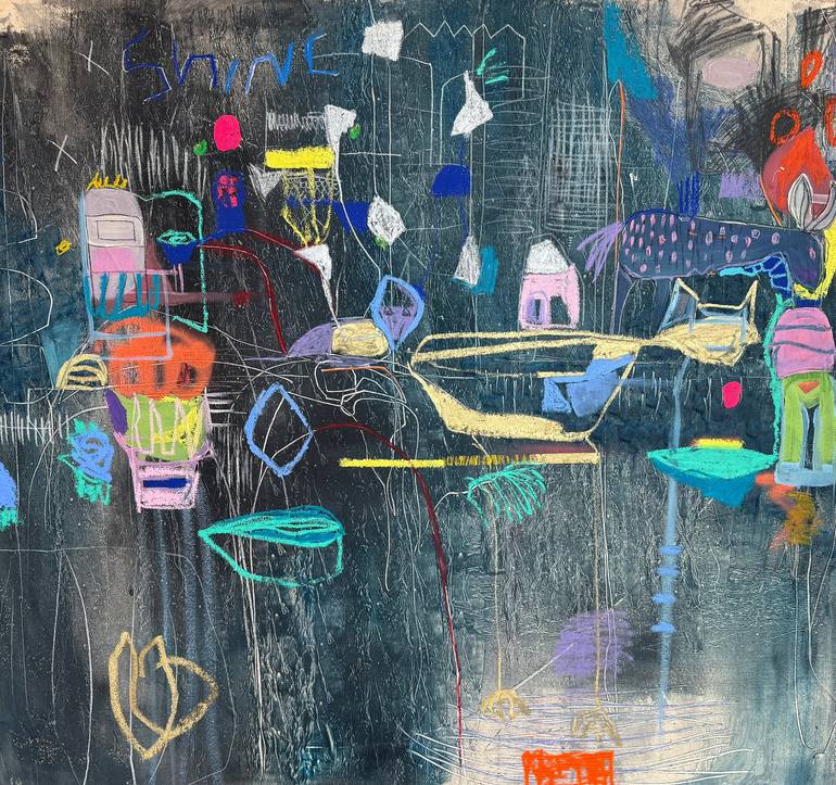 Le Village by Isabelle Gougenheim is a lively and imaginative piece, where color and abstract layers combine to create a world full of energy and creativity. Crafted on an unstretched canvas, this mixed media work combines collage, acrylic, pastel, spray paint, and pencil, resulting in a composition...