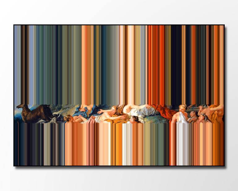 In the series 11010100111R0C0C011011101010, French 18th century painting, displaying eroticized mythologies, are sourced and reduced to pixelated strands of the original identity. There is an inherent beauty in the bar code, portraying a hidden meaning which can only be reconstituted by a prosthetic...