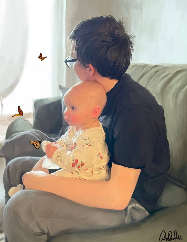 My daughter, Lola inspired my work. Every brush stroke had it’s own place and purpose. The meaning in this painting is something that was true to us all at one point in our lives. Lola imagines the butterflies, they are there to her. The parent looks away. The parent no longer has the imagination ...